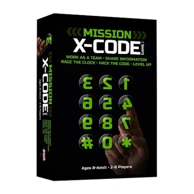 Mayday! In mission x-code, you've got 3 minutes to save the world! The world's computer networks are down, and you can only bring them back by entering a secret 12-digit code. But you can't do it alone - tell the other players what you're missing to complete your part of the code, then swap to collect the cards you need. But each card can only be passed in one direction, so you'll need to work together in this frenetic game that requires good communication, strategy, a little luck, and lots of skill. . . And that's only for the first level. There are 10 levels in all - they get more and more challenging in this game that's designed to bring people together. Recommended for 2 to 8 players, ages 8 and up. Made in China. Package dimensions: 10. 750 x 7. 500 x 2. 625 inches. Includes 48 code cards, 6 wild cards, 12 time cards, game board, timer, illustrated instructions, 2 extra sets of top secret missions.Recommended Ages: 8 Years And UpUse: IndoorMeasurements: 10.75 Length/InchesBase Material: 100% CardboardCare: Wipe CleanCountry of Origin: Imported