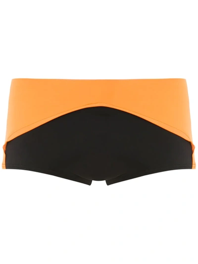 Black and orange color block trunks from Amir Slama featuring a low rise, a slim fit and an elasticated trim.