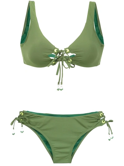 Agreste green lace up bikini set from Amir Slama featuring shoulder straps, a back tie fastening and side tie fastenings. Swimwear must be tried on over your own garments.