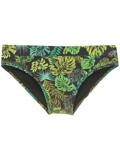 AMIR SLAMA Leaf Print Swim Briefs In Black