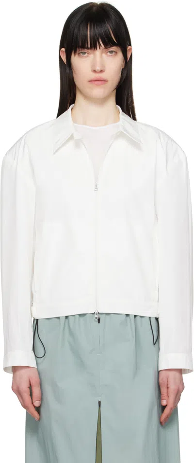 Lightweight crinkled polyester- and cotton-blend taffeta jacket. · Button tab at spread collar · Two-way zip closure · Darts at front · Seam pockets · Partially elasticized cropped hem · Adjustable button tab at cuffs · Adjustable button tabs at back hem Supplier color: White