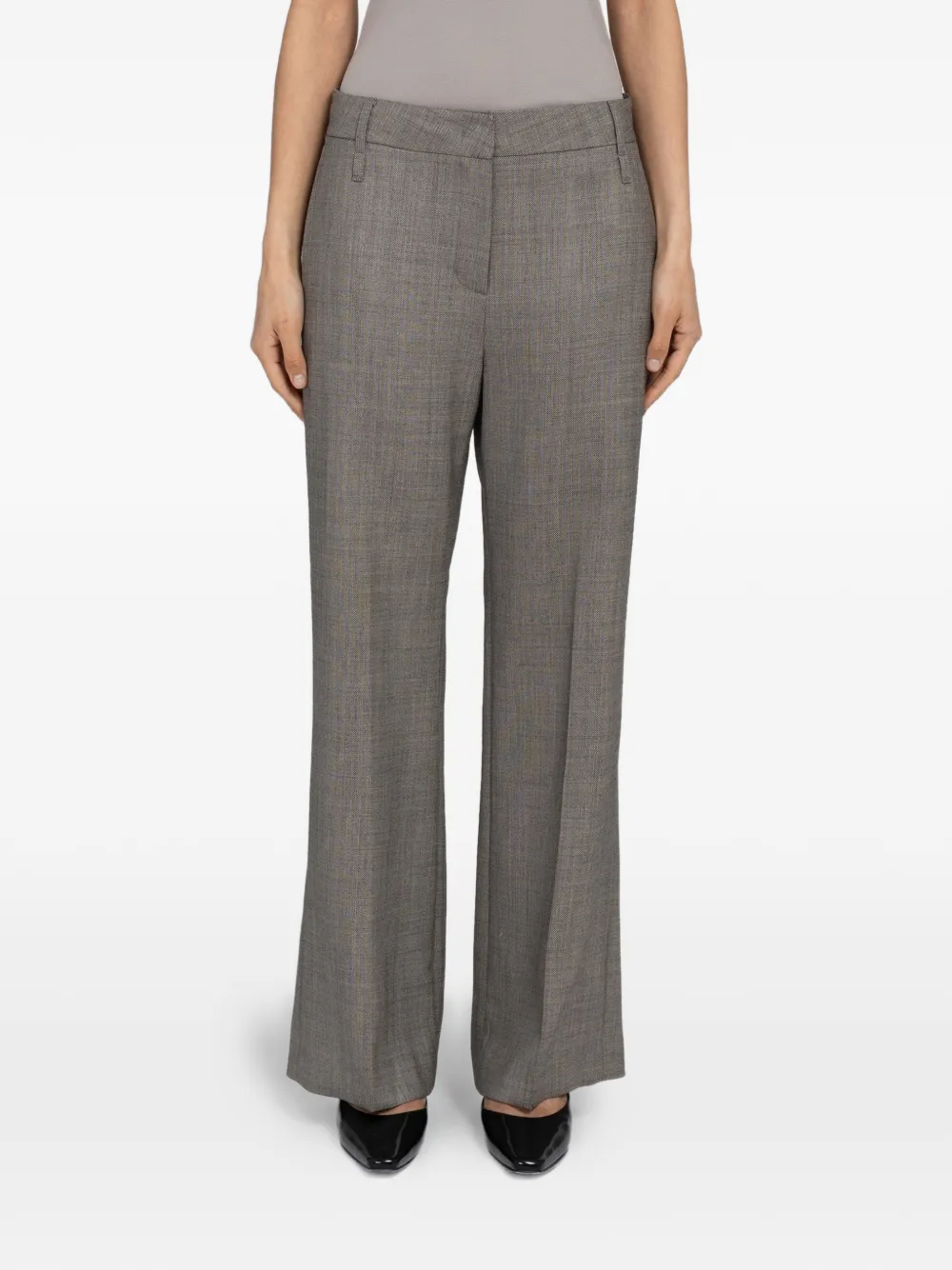 Flared fit pants in wool. High-density fabric for a lightweight and comfortable wear. Flared silhouette for an elegant look. Double belt loop detail for versatile styling. Model is 5'8 and wears size XS.