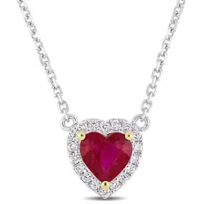 Pre-owned Heart Shape Ruby And Diamond Accent Halo Necklace In 14k White Gold With In Check Description
