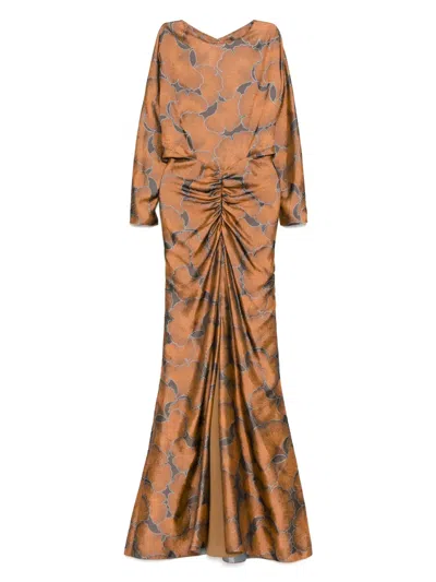AMSALE Long Sleeve Jacquard Gown In Multi