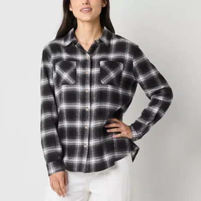 ANA Plaid Womens Long Sleeve Blouse In Black