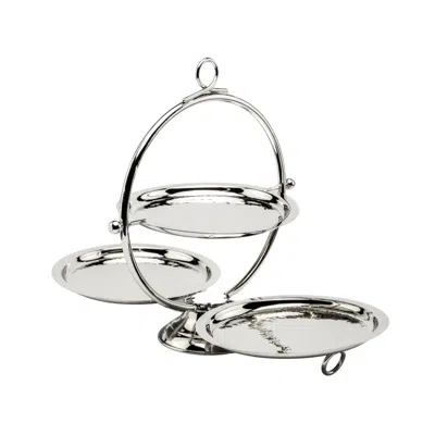 Exquisitely handcrafted, this Foldable Chrome-Plated Solid Copper 3-Tier Serving Stand is the epitome of elegance and functionality. Made from solid copper with a sleek chrome plating, it is designed to resist tarnishing and is completely food-safe, ensuring your treats remain as fresh and appealing as they look. The hammered finish adds a touch of artisanal beauty, while the foldable design makes it easy to transport, store, and set up. Whether for serving desserts, appetizers, or afternoon tea, this versatile piece is perfect for hosting with style and grace. Material: 100% solid copper. Care: Hand wash only with warm water and mild soap. Avoid abrasive tools or detergents to preserve the chrome finish. Food-safe and tarnish-resistant, ideal for direct contact with food. Foldable design for effortless portability and storage. Copper 100%