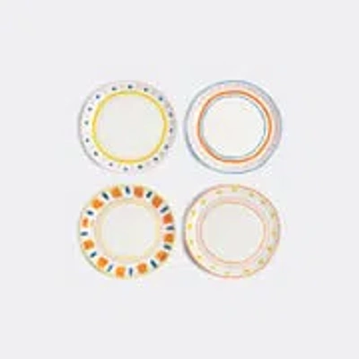 These delightful dinner plates by &k Amsterdam feature deep handpainted borders in warm hues. Each white porcelain plate — in tones of pastel pink, orange, yellow and blue — reveals a different, lively arrangement of circles, lines and dots in single brushstrokes. This multicolor set of four, designed by &k Amsterdam, captures the spirit and freedom of time spent by the sea. The 'Boavista' plate enlivens table set ups, whether used for entertaining or everyday dining. Pair with other pieces from the collection for the complete look.