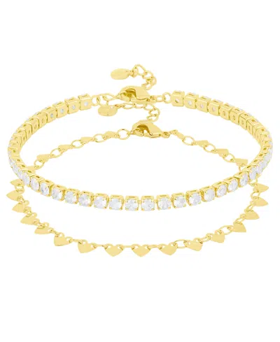 AND NOW THIS Cubic Zirconia 18k Gold Plated Brass Chain Duo Bracelet, Macy's Exclusive