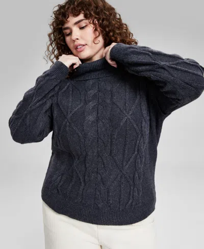 AND NOW THIS Trendy Plus Size Turtleneck Cable-knit Sweater, Created For Macy's In Charcoal Hthr