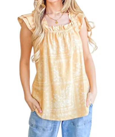 AND THE WHY There She Goes Flutter Sleeve Top In Mustard In Yellow