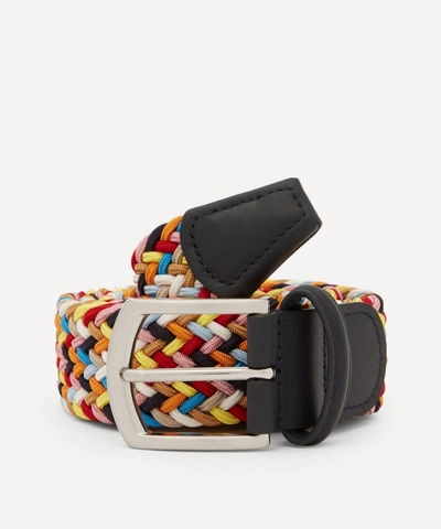 Working with exquisite materials to create its luxurious pieces, Anderson's presents this colourful woven belt. Anderson's belts are handcrafted in northern Italy by local artisans using premium quality materials and traditional techniques. Woven in Parma, a city known for its luxury leather goods, this multi-colour woven belt is finished with a silver-tone buckle and leather trims. Wear it with your smart casual looks for a bright finishing touch.