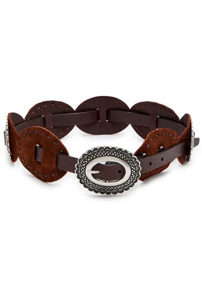 Embellished Suede Concho Belt In Brown