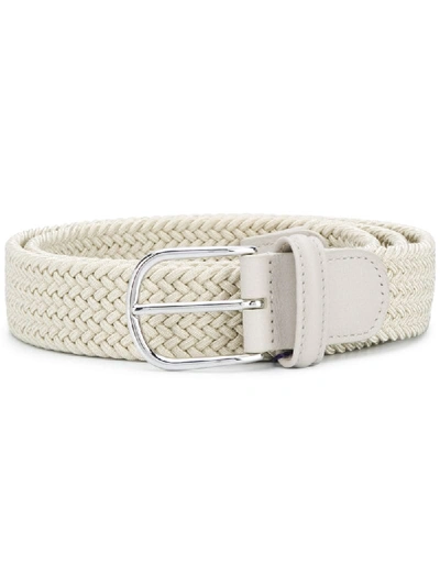 Cream Taric woven belt from ANDERSON'S featuring curved silver-tone buckle.