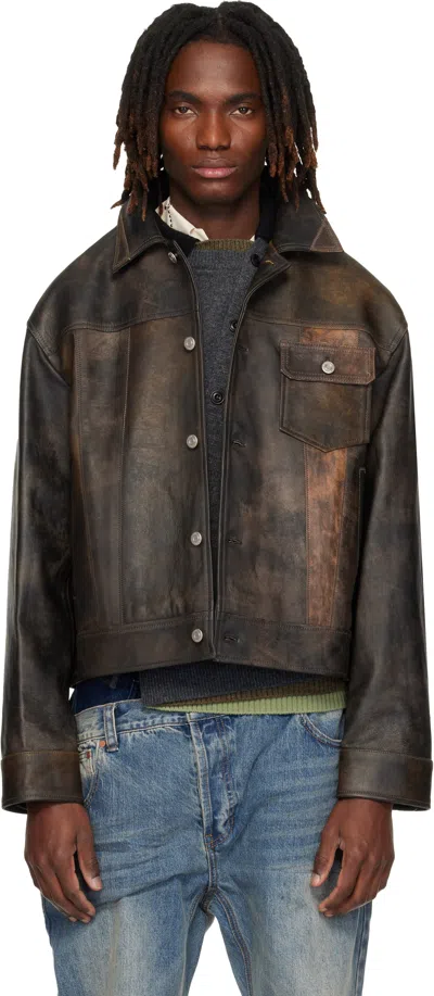 ANDERSSON BELL Brown Leather Patchwork Trucker Jacket
