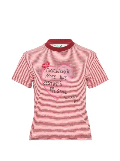 ANDERSSON BELL Essential Heart Message Striped Tee In Multi