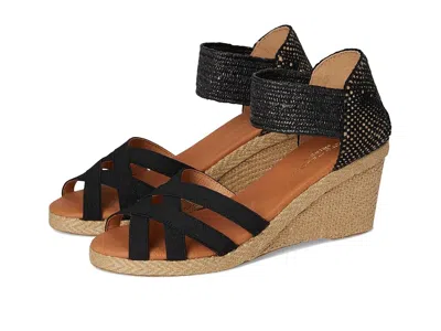 Andre Assous Adin - Women's Wedge Shoes : Black : The Andre Assous Adin sandal boasts a stretch raffia upper with elasticized strap for pull-on ease. Featuring a breathable leather lining, ensuring your feet stay cool and comfortable throughout the day. The memory foam footbed delivers superior cushioning, making these sandals ideal for all-day wear. ; Wedge heel. ; Peep toe silhouette. ; Synthetic outsole. ; Made in Spain. Measurements: ; Heel Height: 2 3 4 in ; Weight: 10 oz ; Platform Height: 1 2 in ; Product measurements were taken using size 9, width M. Please note that measurements may vary by size. | Andre Assous Adin Women's Wedge Shoes Black : 6 M, Leather