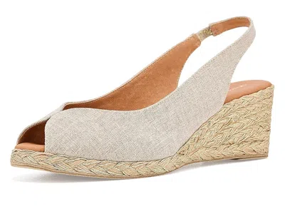 Andre Assous Audrey - Women's Sandals : Hemp Glitter Natural : Redefine your aesthetic styling the Andre Assous Audrey, a slingback sandal that pairs refined craftsmanship with an iconic silhouette. Designed for the modern woman who values both style and comfort, this sandal features a soft cotton upper that delivers a lightweight and breathable feel for all-day wear. The luxurious leather lining, insole, and outsole enhance durability while providing a smooth, comfortable step with every stride. Set on a beautifully textured jute wedge heel, Audrey blends natural charm with sophisticated design. The easy slip-on silhouette ensures effortless wear, making it perfect for busy mornings or spontaneous outings. Its mid-heel height offers just the right lift, while the classic round toe shape adds a contemporary yet versatile touch. ; Made in Spain. Measurements: ; Heel Height: 2 1 2 in ; Weight: 1.5 oz ; Product measurements were taken using size 7, width M. Please note that measurements may vary by size. | Andre Assous Audrey Women's Sandals Hemp Glitter Natural : 6 M