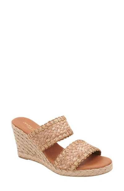 ANDRE ASSOUS Nolita Raffia Espadrille Platform Wedge Slide Sandal In Cocoa/ Bronze