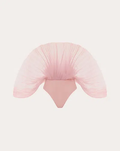Women's Sombra Sheer Organza Pleated Bodysuit In Pink