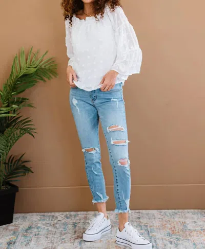 Daydreamer Full Size Run Pom-pom Blouse In White