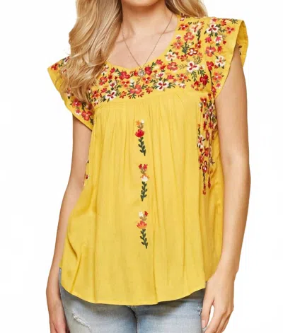 Flutter Sleeve Embroidered Top In Lemon In Yellow