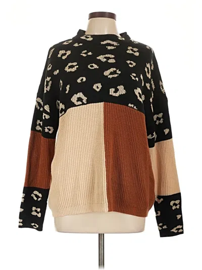 Andree by UNIT Pullover Sweater, Size: Large. Item Details: Brown, Animal Print Pattern, Mock Neckline, Long Sleeve, Women's Tops, Acrylic/Cotton