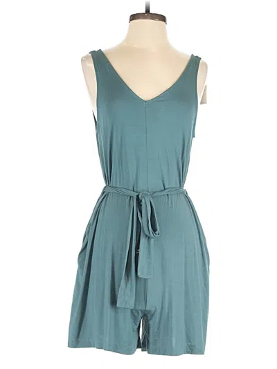 Andree by UNIT Romper, Size: Small. Item Details: Teal, Solid Pattern, V-Neck, Boot Leg, Sleeveless, Frayed Edges, Women's Dresses