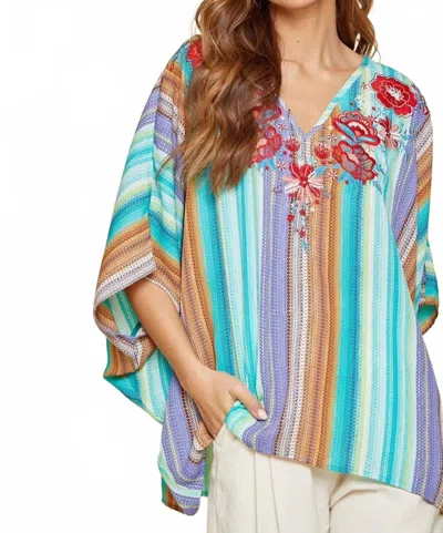 ANDREE BY UNIT Striped Embroidered Poncho Top In Multi