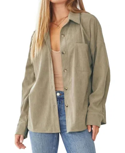 ANDREE BY UNIT We Go Together Corduroy Button Down Top In Olive In Green
