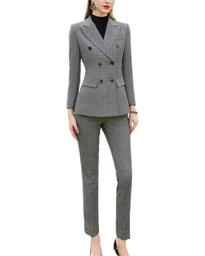 Elevate your workwear wardrobe with the Anette 2pc Wool-Blend Blazer & Pant Set. This chic set from the brand 'Anette' comes in a sophisticated Gray color, perfect for a professional look. The blazer measures approximately 27.2 inches from shoulder to hem, while the pants have an inseam of approximately 35.8 inches. Made from a luxurious blend of 52.4% Polyester, 42.4% Sheep Wool, and 5.2% Other Fabric, this set is not only stylish but also comfortable to wear. For care instructions, simply hand wash and lay flat to dry. Imported for quality and craftsmanship, this set is sure to become a staple in your wardrobe. Perfect for the office or special occasions, the Anette 2pc Wool-Blend Blazer & Pant Set is a must-have for any fashion-forward woman.
