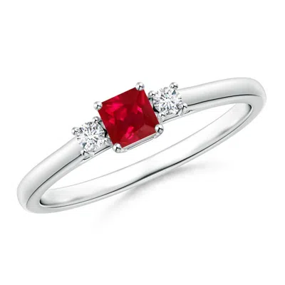 ANGARA Classic Square Ruby And Diamond Three Stone Ring