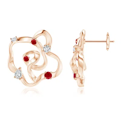 ANGARA Multi-shape Dispersed Diamond & Ruby Sakura Studs In Gold
