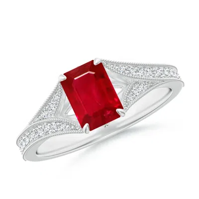 ANGARA Vintage Inspired Emerald-cut Ruby Split Shank Engagement Ring In Red
