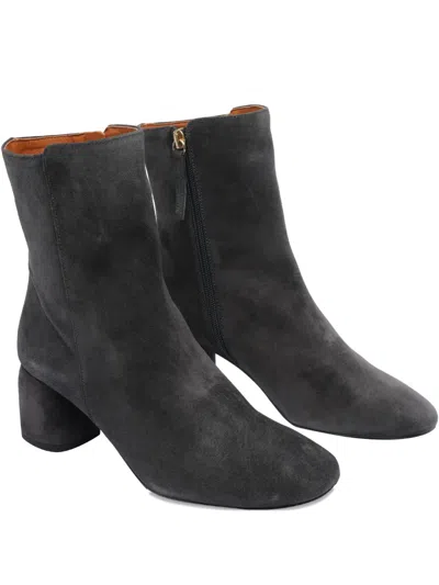 grey suede round toe zip fastening