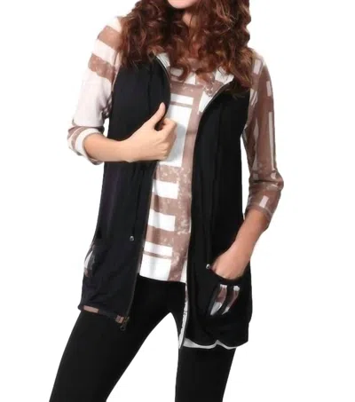 ANGEL On The Grid Hooded Vest In Black/taupe