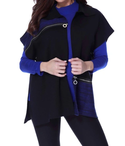 ANGEL Zip Detail Poncho In Black/cobalt In Multi