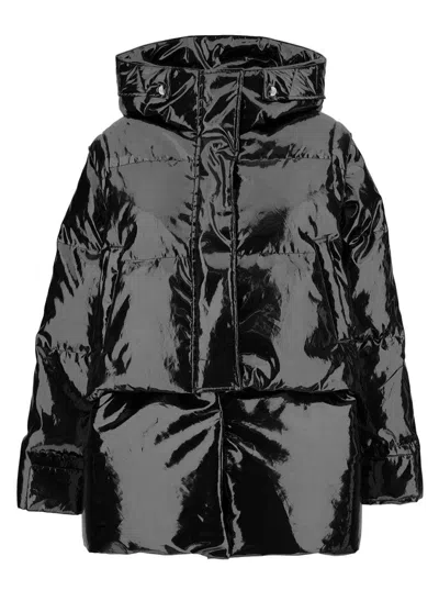 The Chiara oversized down jacket by Anitroc features a stylish design with practical elements. Quilted shiny nylon exterior Fixed hood Long sleeves Front fastening Two front welt pockets Detachable bottom for styling options