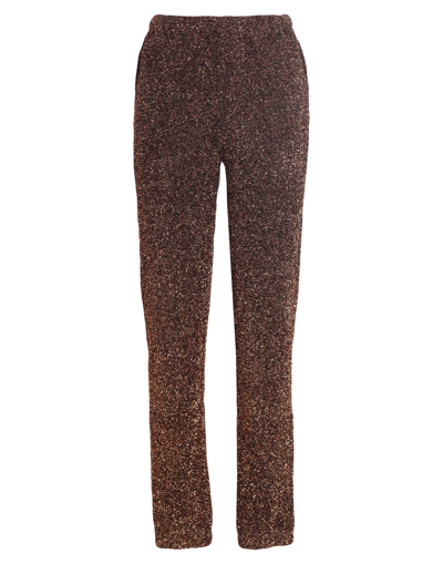 knitted, lightweight knit, no appliqués, solid color, high waisted, elasticized waist, tapered leg, comfort fit, multipockets, lamé, with elastic bottom, pants , Color: Brown , Size: M