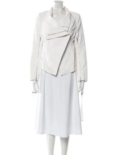 Ann Demeulemeester Biker Jacket White Shawl Collar Slit Pockets & Zip Closure Fit: Jackets by Ann Demeulemeester typically fit true to size. | Ann Demeulemeester Biker Jacket in White, Women's US6, FR38 | M