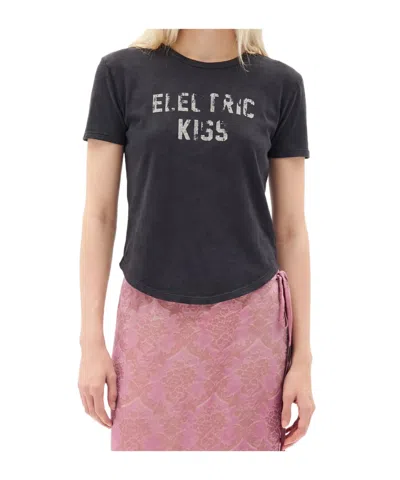 'Electric Kiss' Flock Print Short Sleeves Crew Neck Straight Hem