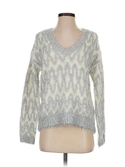 Ann Taylor LOFT Pullover Sweater, Size: X-Small. Item Details: Silver, Chevron/Herringbone Pattern, V Neck, Long Sleeve, Women's Tops, Acrylic/Polyester/Metallic