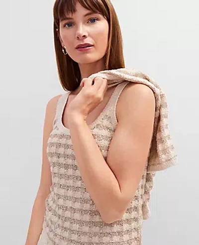 ANN TAYLOR Petite Sequin Tweed Tank In Neutral
