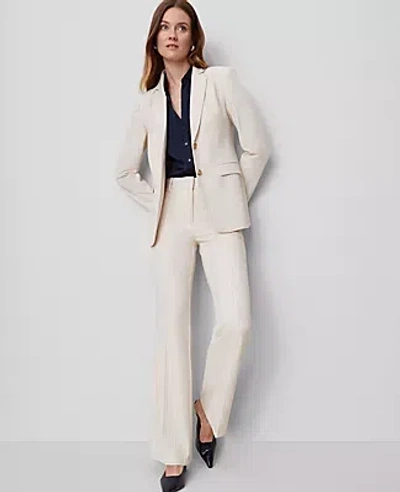 These flare trouser pants are the perfect balance of modern styling and timeless detail. Front zip with a hook-and-bar closure. Belt loops. Slash pockets. Back welt pockets.,Leg Shape:Trouser – a pant with a bit of flare that lengthens legs, Rise:High rise: sits 1/2" to 1" below natural waist, Imported:Imported, Fit:Tailored & fitted, Length:Full length: 30" inseam with 21 1/2" leg opening, Fabrication:65% Polyester, 31% Viscose, 4% Spandex, Garment Care:Machine Washable The Petite Flare Trouser Pant in Pinstripe by Ann Taylor Size Petite - 8 Pale Linen Women's Regular, Trouser, Pants, 65%, Polyester, 31%, Viscose, 4%, Spandex, Machine, Washable