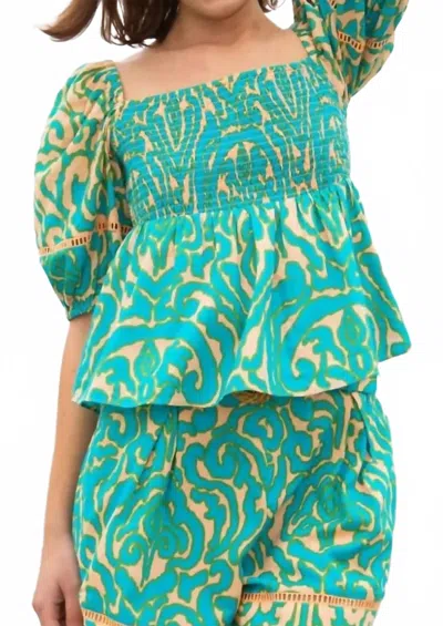 A timeless blouse that will never go out of style.The Violet Top by Anna Cate in Teal Block is a chic staple for summer vacations, embodying the Y2K trend. This patterned blouse features a stylish squareneck with short sleeves, perfect for warm weather. Designed for easy wear, its pull-on closure ensures a smooth, fuss-free fit. Ideal for women who appreciate a blend of comfort and fashion.