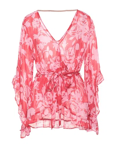 crepe, belt, metal applications, floral design, v-neck, 3/4 length sleeves, no pockets , Color: Coral , Size: 4