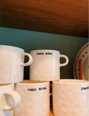 Energised by sojourns through Indonesia and Thailand’s thriving rice paddies and India’s bustling bazaars, it’s no wonder Anna de Lanoy Meijer and Nina Poot felt inspired to launch their homeware label, anna + nina. Encapsulating sculptural vases, candles and eclectic tableware – in a kaleidoscope of jewel hues – our colourful collection is home to a cabinet of curiosities destined to add zest to your home décor.| anna + nina ceramic mug100% ceramicEssentials collection, curved side handle, 'magic potion' slogan at front, hand paintedHeight 10.3cm, width 12.5cm, depth 0.9cmDishwasher safePlease note: Each mug is hand painted which means there may be small variances per product
