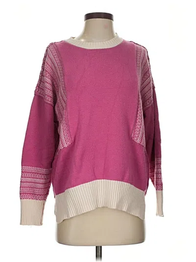 ANNIEWEAR Pullover Sweater, Size: Small. Item Details: Pink, Color Block Pattern, Scoop Neck, 3/4 Sleeve, Velvet, Women's Tops, Viscose/Polyester/Polyamide