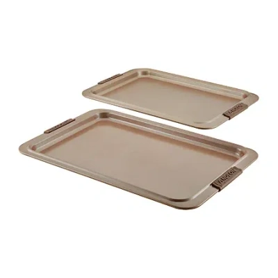 Welcome to exceptional bakeware for dedicated bakers. Designed to deliver great baking results with both ease and efficiency, this Anolon Advanced Bakeware Nonstick Sheet Pan Set measures up to the high standards of dedicated bakers, cookie lovers, and sheet pan meal connoisseurs alike. Ready for double batches of deliciousness, these versatile, dishwasher safe cookie pans are ideal for baking chocolate chip cookies, spicy wings, jelly rolls, or even roasting veggies. Oven safe to 450°F, these nonstick pans are crafted from heavy gauge steel to resist warping and feature a medium color tone to promote even browning and provide the even heat distribution necessary to successful baking and roasting.This product contains (Este producto contiene) PTFE (PFAS). For more information on PFAS or chemicals in this product, visit (Para obtener mas informacion sobre PFAS o productos quimicos en este producto, visite) anolon.com/pages/product-disclosures.# Pieces In Set: 2Included: 1 11 X 17 Inch Cookie Sheet(s), 1 10 X 15 Inch Cookie Sheet(s)Features: Dishwasher Safe, Non-Stick, Even Heating, Oven SafeManufacturer Warranty: Lifetime LimitedRecommended Utensil Material: Silicone, Wood, NylonShape: RectangleMaximum Temp (f): 450 Degrees FCare: Dishwasher SafeMaterial: SteelCountry of Origin: Imported