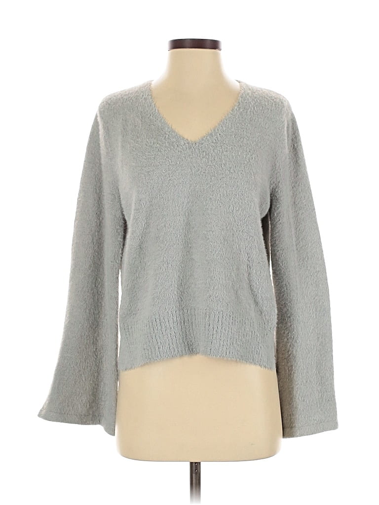 Another Love Pullover Sweater, Size: Small. Item Details: Gray, V Neck, 3/4 Sleeve, Frayed Edges, Women's Tops, Nylon/Nylon