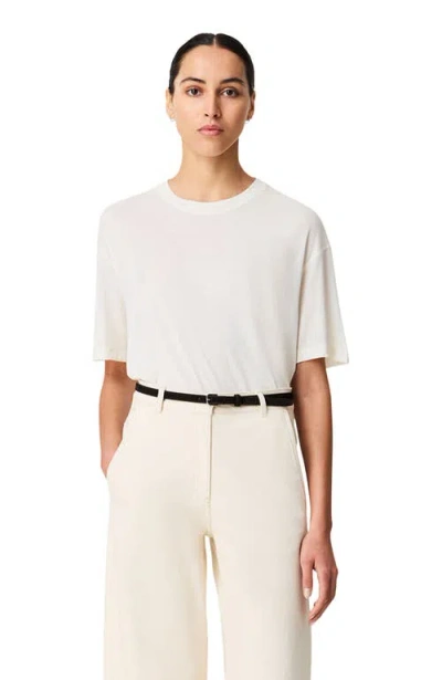 This relaxed tee features dropped shoulders and a sloped hem for an oversized fit. Finshed with back seam details.Our partner PYRATEX® uses SEACELL, a cellulose fiber enriched with seaweed. The process starts with responsibly harvesting seaweed, a carbon-neutral, renewable crop, from the fjords of Iceland. The seaweed is then washed, dried, carefully ground, and added to a wood pulp solution, where it is spun in a closed-loop system that generates no chemical waste. 100% Lyocell (Seacell) Oversized attitude Dropped shoulders Reverse coverstitch seaming details Sloped hem Machine wash cold or hand wash, air dry